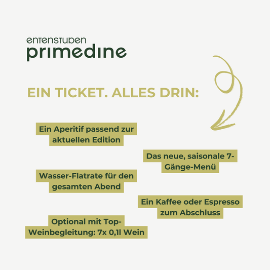 Zu den Primedine Events6x im Jahr feiern wir PrimeDine – Du kannst bei der Erstaufführung dabei sein. Kaufe hier ein Ticket.